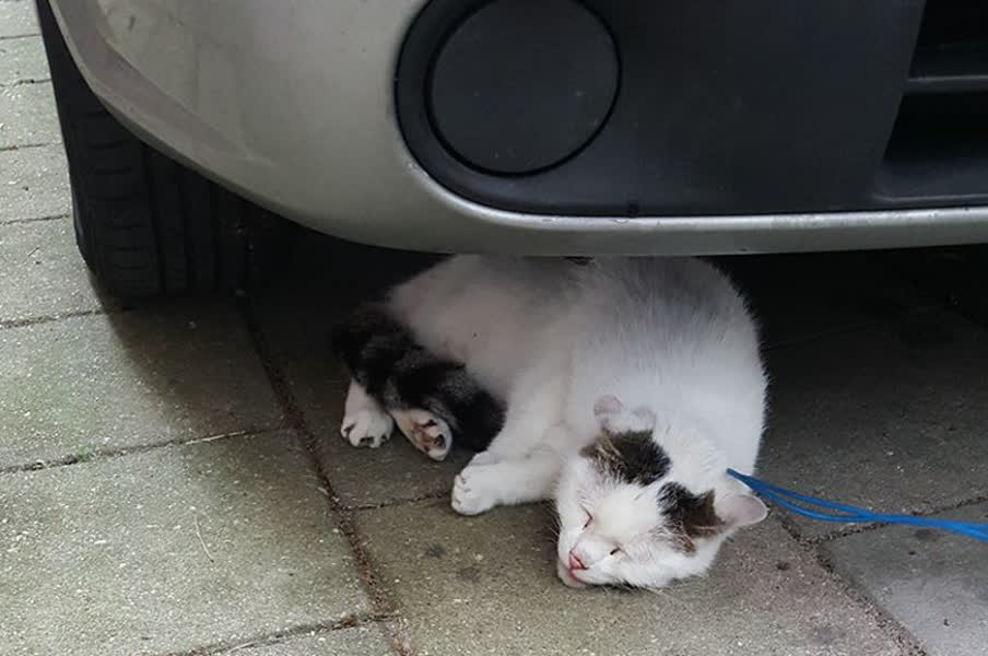 Een bewoonster van de Cannenburg in Sterrenburg wist vanochtend niet wat ze zag toen ze terugkwam van boodschappen doen. Onder de auto van de buren zat een kat. Vastgebonden met een touw. Het beestje bleek niet van de buurvrouw te zijn, maar van iemand verderop in de straat. “De kat was al twee dagen weg, maar dat gebeurt wel vaker”, zegt ze, “Ik maakte me geen zorgen”.