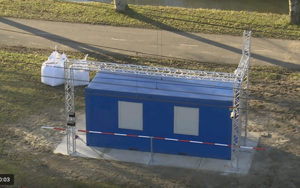 Op rangeerterrein Kijfhoek staat een blauwe container met camera's en sensoren. Zo worden de codes op de wagons gecontroleerd en de temperatuur gemeten.