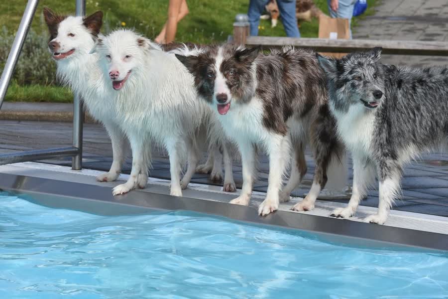 Waar de ene hond dapper de glijbaan of duikplank trotseert hebben anderen meer moeite met het water. Een aantal baasjes probeerde alles in hun macht om de trouwe viervoeter het water in te krijgen, maar zonder succes. Met de hoeveelheid aanwezige honden was dat overigens geen probleem, ook buiten het water werd er veel onderling gespeeld.