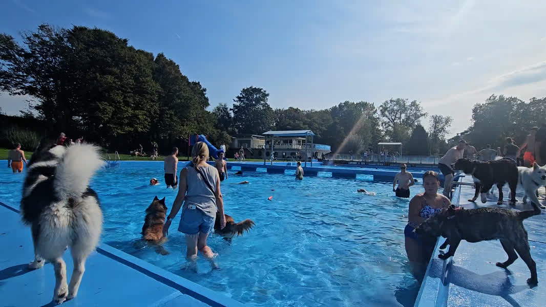 In het Wantijbad in Dordrecht vond dit weekend eveneens een hondenplons plaats. Daar kwamen naar tientallen viervoeters op af. Natuurlijk wel begeleid door hun baasjes. Voor het roemruchte buitenbad in Dordrecht, dat normaal gesproken begin september de deuren sluit, is het een leuke manier om het bad nog een keer goed te laten benutten.