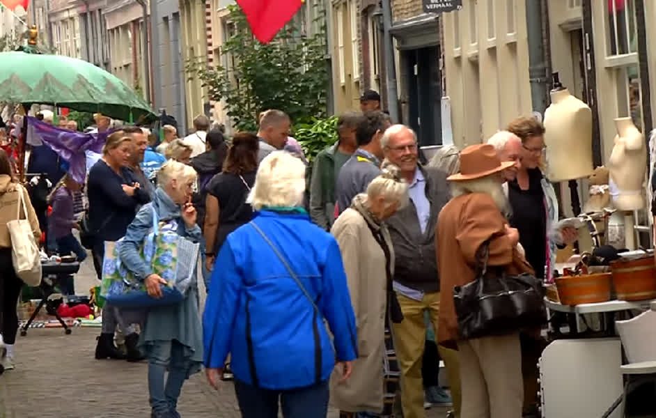 Het is geen Koningsdag, maar daar lijkt het wel een beetje op. Dordtenaren die vanaf een kleedje of ...