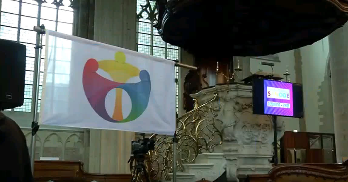 Tijdens de Roze Ode aan de Synode vrijdagmiddag is een speciale LHBTI-vlag en een kunstwerk gepresenteerd.