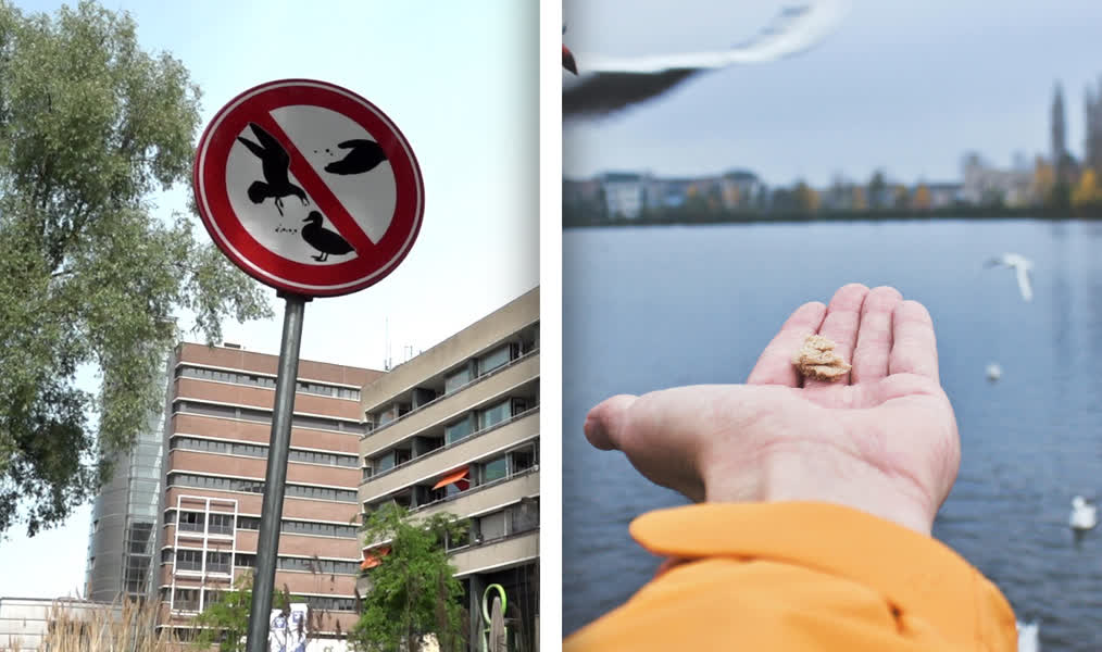 Er zijn al op diverse plaatsen in de stad ‘verboden te voeren’-borden geplaatst.