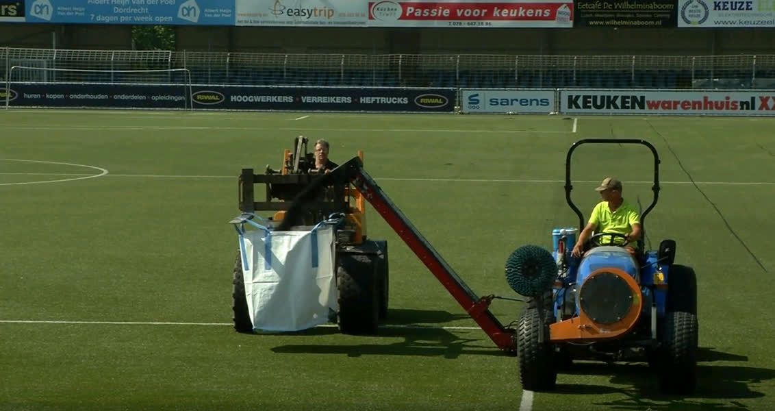 Voetbalveld FC Dordrecht wordt gestofzuigd