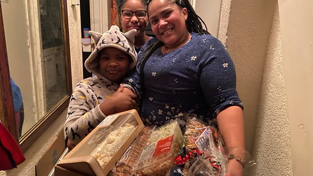 Henk-Jos loopt inmiddels met een goed gevulde doos naar Mia en haar gezin. "Een moeder met kinderen die in de knel zet. Ze is altijd blij als we komen.'