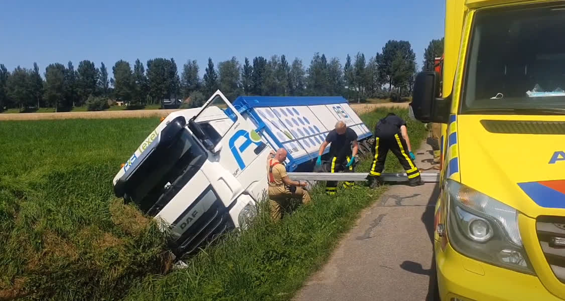 Een vrachtwagen is zondagmiddag op de Meeuwenseweg in de sloot terecht gekomen. De chauffeur is behulp van de brandweer uit de cabine geklommen, en werd voor onderzoek meegenomen naar het ziekenhuis.