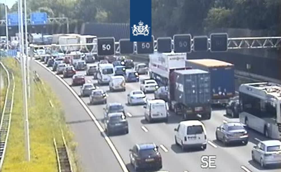 De hele rijrichting van de A16 tussen knooppunt Terbregseplein en knooppunt Ridderkerk is komend wee...