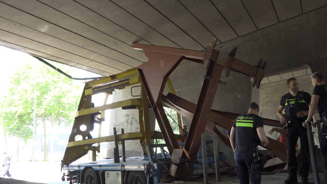 Het plafond van het viaduct raakte beschadigd en ook een buis werd losgetrokken.