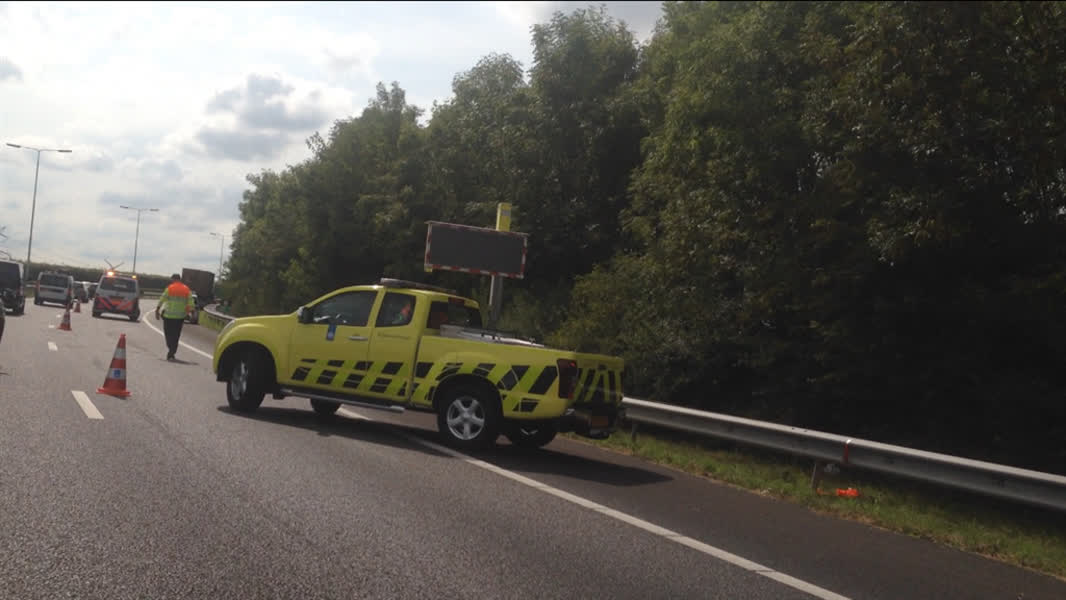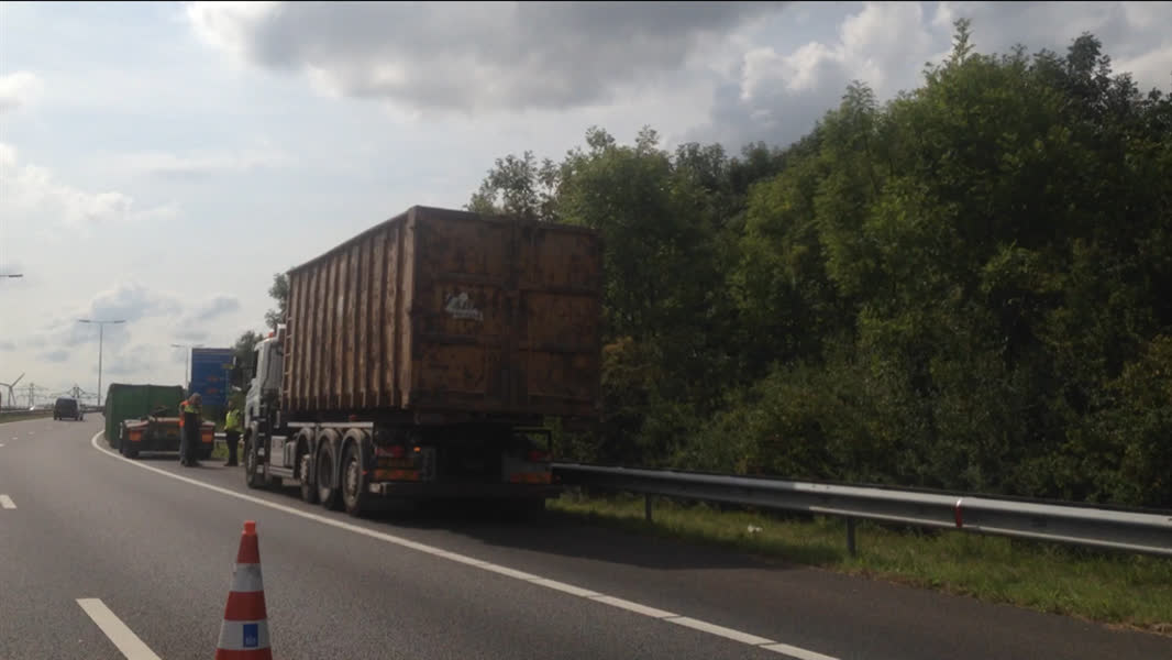 Een vrachtwagen is donderdagmiddag op de N3 een container verloren. De afvalcontainer schoof van de oplegger en kwam op de weg terecht.