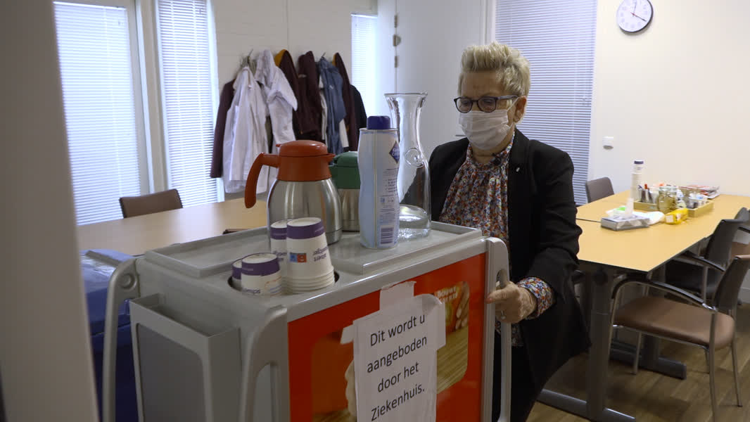 Na 3 jaar voor haar man te hebben gezorgd voelde Dir zich eenzaam. "Maar toen overleed hij. En op aanraden van mijn kleinzoon, die zei 'Joh, oma. Ga eens wat vrijwilligerswerk doen!', ben ik naar een open dag van het ziekenhuis gegaan. Heb ik een gesprek gehad en ben ik zo gezegd 'aangenomen'." En sinds dien schenkt zij iedere woensdag met plezier de koffie en thee voor de patiënten.