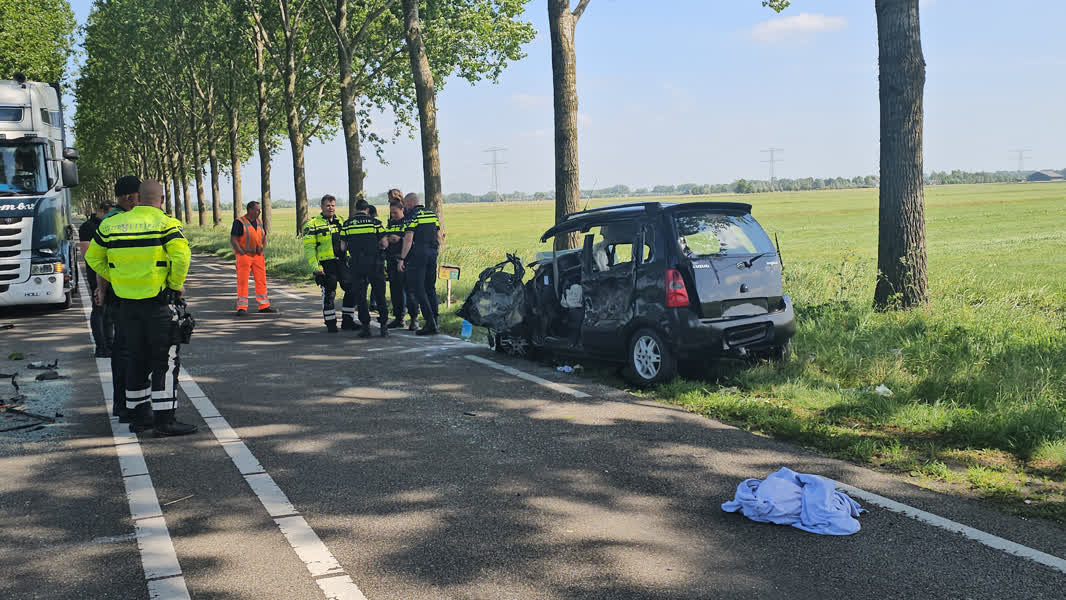De bestuurster van de auto, die vrijdagmiddag op de N214 bij Wijngaarden in botsing kwam met twee vrachtwagens, is in het ziekenhuis aan haar verwondingen overleden. Dat meldt de politie zaterdag.