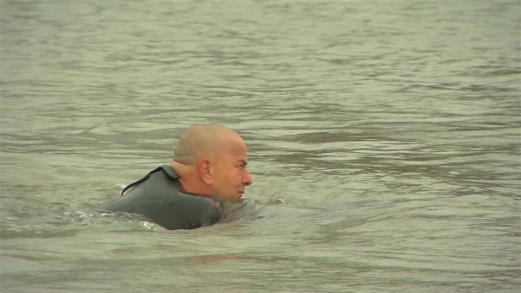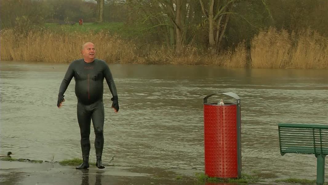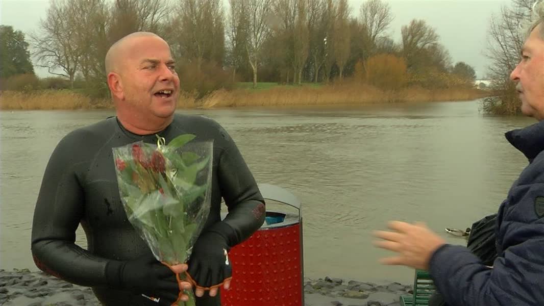 Dordtenaar Ivo van Dijk is zaterdag voor de 1000ste keer het Wantij in gegaan om te zwemmen.