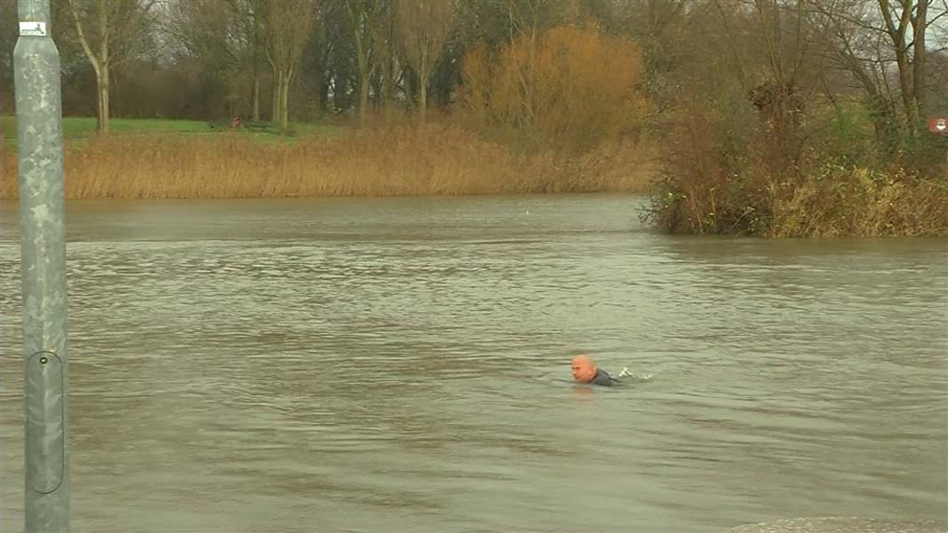 Van Dijk gaat vrijwel iedere dag zwemmen. Vandaag is dat niet anders. Vanaf zijn vaste startplek op de kop van de Loswalweg dook hij het Wantij in. Inmiddels draagt hij wel een wetsuit: “Het scheelt, maar het zwemt niet zo lekker”. Afgelopen maandag zwom hij nog zonder. Van Dijk sluit niet uit dat hij zondag voor de 1001ste maal een duik gaat nemen in het Wantij.