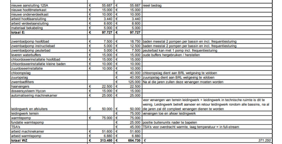 Ook bij de door de T@B ingeschatte kosten voor onder meer zwembadfilters - waar de T@B niets voor geraamd heeft - en personeel plaatste Synarchis kanttekeningen. Is de situatie door de partij iets te rooskleurig voorgesteld? “Eigenlijk niet”, is De Hon overtuigd. “Dit kost maximaal 1,5 miljoen, wij zijn met het slechtste scenario in zee gegaan. Alle getallen zijn gevalideerd.”