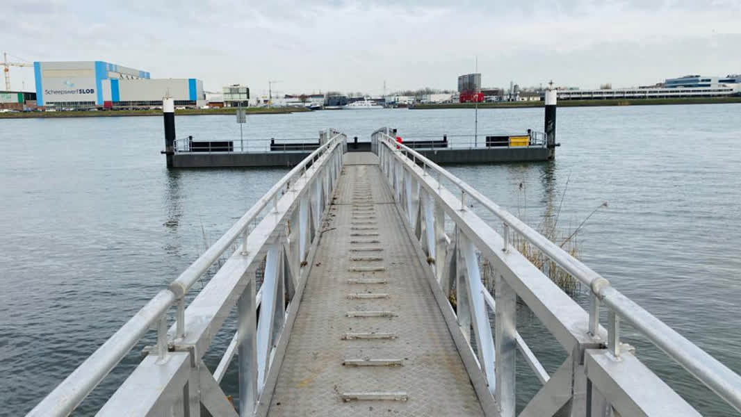 De tijdelijke halte van de waterbus aan de Grevelingenweg op de Staart is sinds woensdag 29 januari in gebruik. Eén keer per uur legt lijn 23 tussen Merwekade en Sliedrecht hier aan.