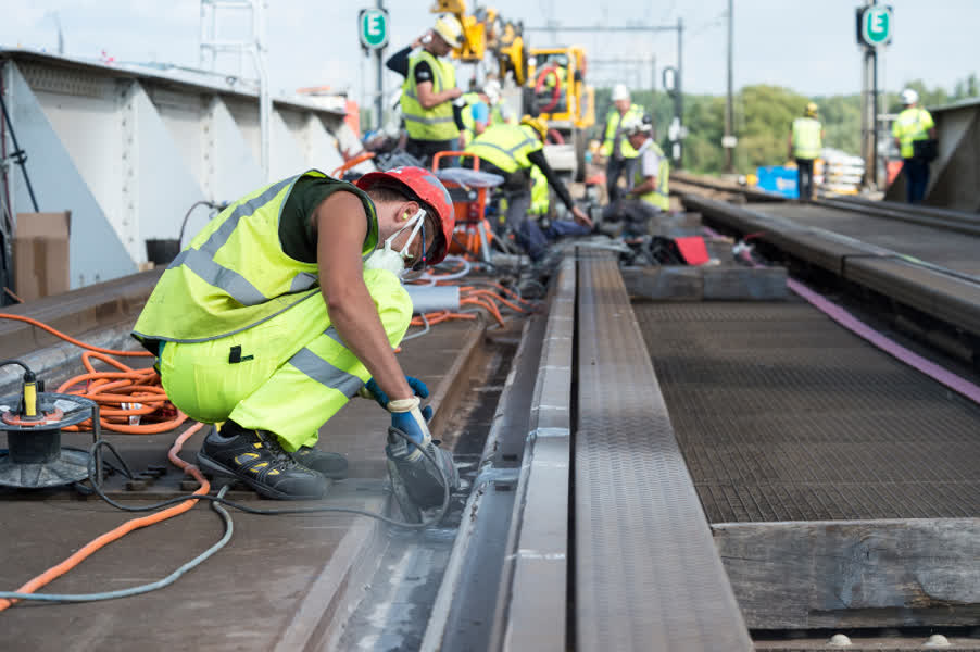 Tot 11 augustus wordt er gewerkt aan de vervanging van de rails op de brug, omdat die scheuren vertonen. Het gaat om een traject van twee kilometer, waar extra lange spoorstaven ingegoten worden in een rubberbed. Bovendien wordt het brugdek versterkt.