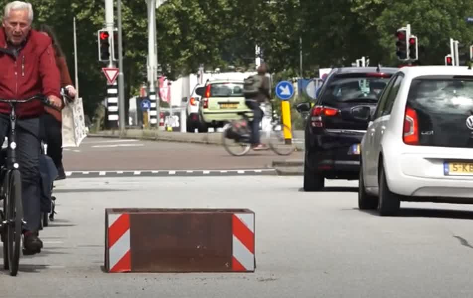 "Door de plantenbakken te plaatsen wordt de rijbaan teruggebracht tot het oorspronkelijke, smalle formaat. Dat moet leiden tot een lagere snelheid", legt woordvoerder Jonne van Bochhove van de gemeente Dordrecht uit.
