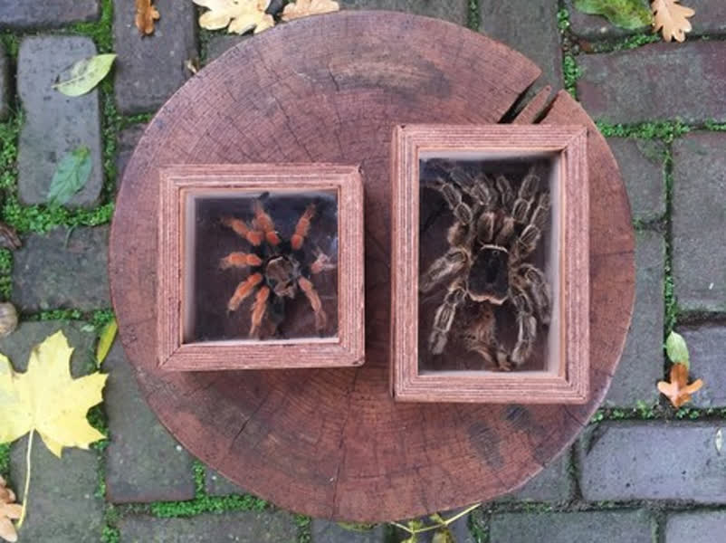Duurzaamheidscentrum Weizigt heeft twee exoskeletten van vogelspinnen cadeau gekregen. Die zijn nu te zien in de schatkist van het Informatiepunt.