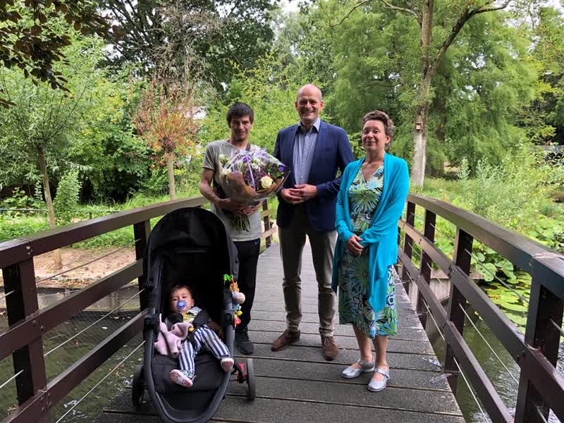 De 100.000ste bezoeker van 2019 liep donderdagmiddag Duurzaamheidscentrum Weizigt binnen en werd door wethouder Rik van der Linden onthaalt met een bloemetje. De gelukkigen zijn Steven Kirchjunger en zijn dochter Ivy, hij komt regelmatig op de Stadsboerderij.