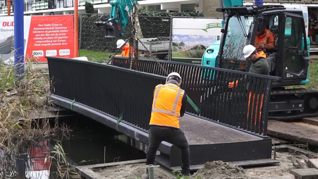 Nog nooit gebeurde dit in de wereld. In Alphen aan den Rijn is een bruggetje geplaatst van recycled plastic. De brug is uit de 3D-printer gekomen van het Dordtse bedrijf 10XL. “Dit is heel bijzonder,” zegt Linda van Hal van het bedrijf.