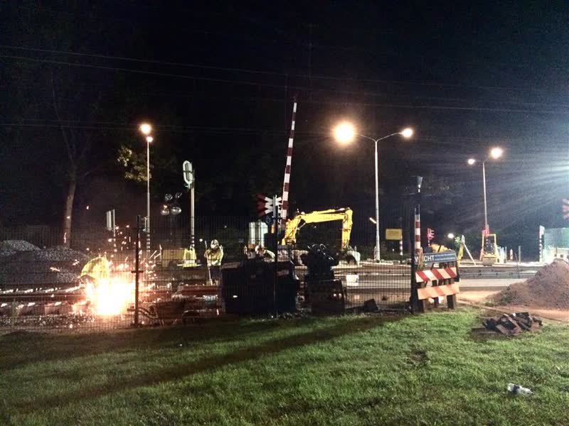 Er wordt dit weekend dag en nacht gewerkt aan de spoorwegovergang aan het Halmaheiraplein.