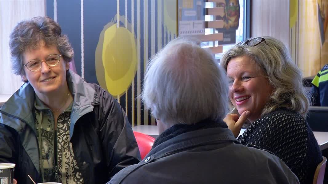 Wethouders Karin Lambrechts en Rik van der Linden schoven vanmorgen in de McDonalds op de Staart aan bij Koffie met een Cop. Tijdens het koffieuurtje worden veel problemen bij de politie aangedragen, die door stadsbeheer of de gemeente moeten worden opgelost.