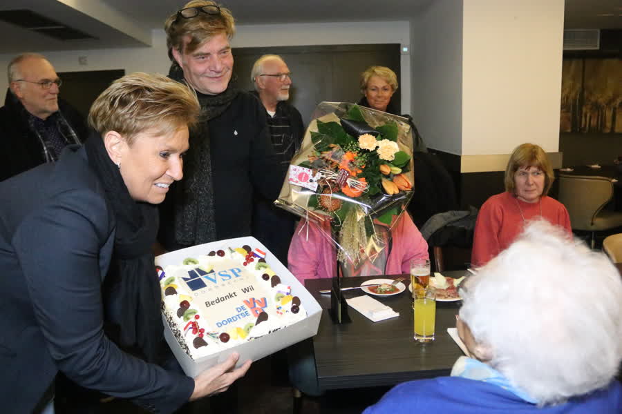 Inmiddels is ze de tachtig ruim gepasseerd en stopt ze met het vrijwilligerswerk. Ze heeft haar laatste dienst in De Admiraal gedraaid. “Je kon er niet komen of Wil was aanwezig”, vertelt Peter Kwaak, raadslid van de VVD. “Wil regelde alles: het biljarten, de koffie-inloop, de ochtenden voor de kinderen. Kortom: Wil was het aanspreekpunt en de belangrijkste factor. Margret en ik zeiden tegen elkaar: laten we haar gaan verrassen.” En dat gebeurde tijdens een etentje in een Dordts restaurant. Daar werd ze 'overvallen' met een taart en bloemen.