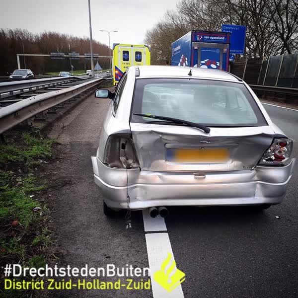 Een witte bestelbus is maandag rond 11:45 uur doorgereden na een ongeval te hebben veroorzaakt op de N3 richting Dordrecht. Hij reed in op een auto met pech, de bestuurder daarvan is met nekletsel naar het ziekenhuis gebracht.