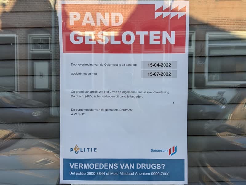 Het pand is op last van de burgemeester voor de duur van drie maanden gesloten. De burgemeester wil met het sluiten van panden waar drugs aangetroffen wordt de openbare orde herstellen, herhaling voorkomen en een signaal afgeven dat hiertegen stevig wordt opgetreden.
