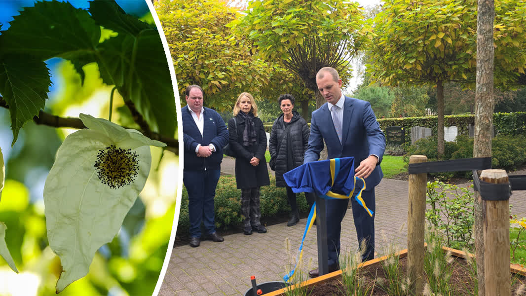 In Papendrecht is dit weekend een speciale boom onthuld voor ongeboren kinderen. De zogeheten troostboom wordt vanwege de witte bladeren ook wel 'zakdoekenboom' genoemd, bedoeld voor troost en tranen. "Ik vind het heel mooi dat we ouders die daar behoefte aan hebben een eigen gedenkplek kunnen bieden."