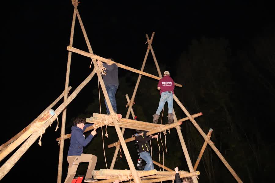 Verschillende scouts waren donderdagavond hard aan het werk om een zendtoren te maken. Die maken ze zelf en volledig van hout, voor Jota-Joti, een internationaal scoutevenement dat vrijdagavond en zaterdag plaatsvindt.