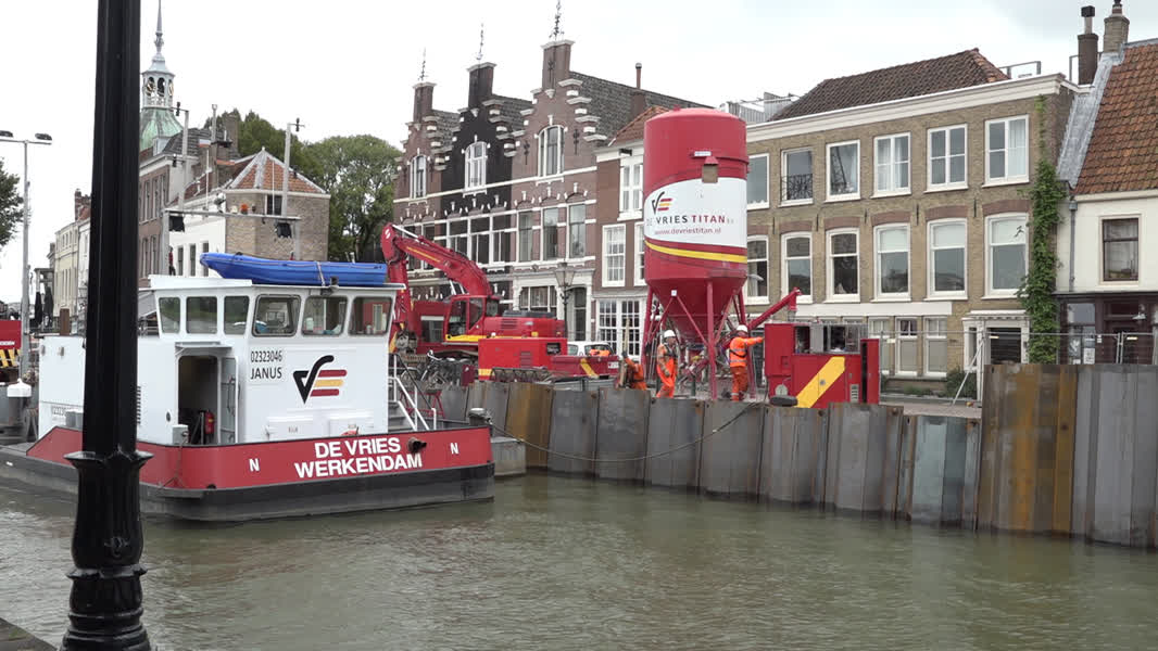 Door gaten in het houten scherm achter de kademuur aan de Kuipershaven kwam er water onder de kade, met wegzakkende straatstenen als gevolg. Om verdere verzakkingen te voorkomen wordt er nu een nieuw stalen scherm in de kadewand geplaatst.