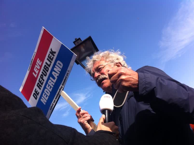Het was aangekondigd:  vandaag zouden ook mensen die minder op hebben met de monarchie hun mening kenbaar maken.Op het Groothoofd is een eerste demonstrant gesignaleerd...