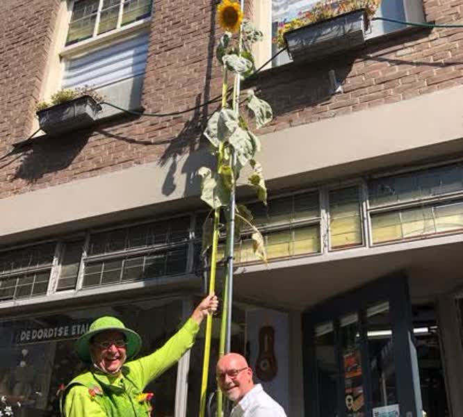 Het duurzaamheidscentrum organiseert daarom ieder jaar een zonnebloemwedstrijd. Dordtenaren worden uitgedaagd om de hoogste zonnebloem te kweken. De hoogste zonnebloem van Dordrecht was vorig jaar wel drie meter tachtig.