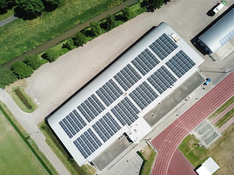 De zonnepanelen zorgen ervoor dat de jaarproductie op 245.000 kWh aan opgewekte zonnestroom komt te liggen. "Hiermee realiseren wij onze ambitie, namelijk de eerste energieneutrale atletiekhal van het land", legt penningmeester Kees de Pee uit.