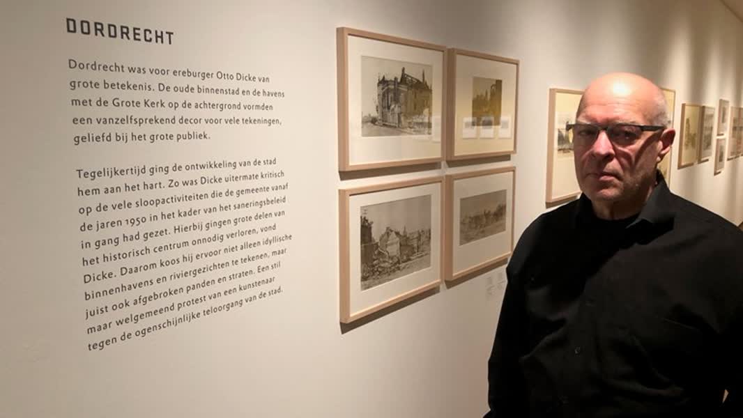 Dicke tekende ook veel Dordtse stadsgezichten, onder meer van dingen die gesloopt werden. "Dat stoorde hem enorm. Hij schreef daarover ook brieven aan de gemeenteraad. Waar zijn jullie nou mee bezig...?" Een kritische ereburger? "Ja, dat kun je wel zeggen ja."