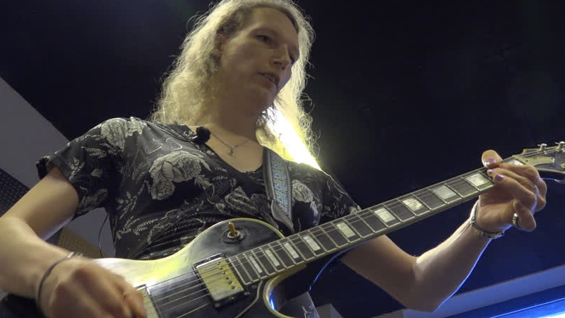 Jonge getalenteerde gitaristen en beginnende bandjes krijgen les van Sylvia Stevens (42). En hoewel ...
