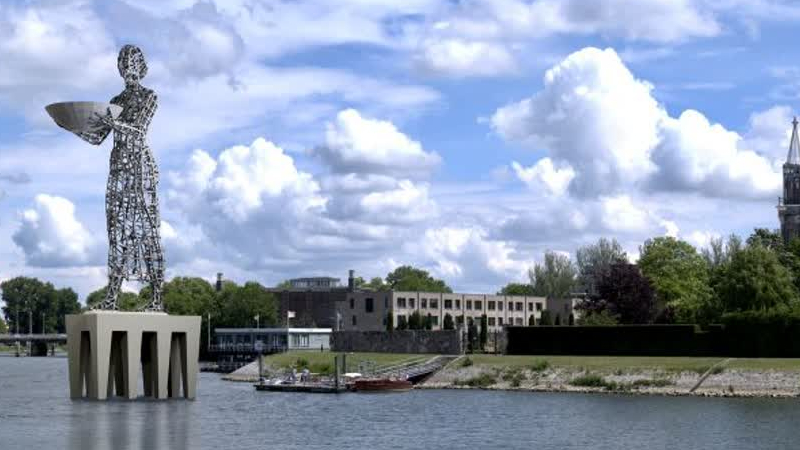 Het ruim vier meter hoge beeld Hanneken van Dordt heeft een nieuwe, tijdelijke standplaats. Ze is de...
