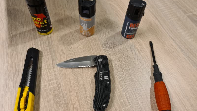 Messen, een geslepen schroevendraaier, busjes pepperspray en een stanleymes. Dat was de vangst van e...