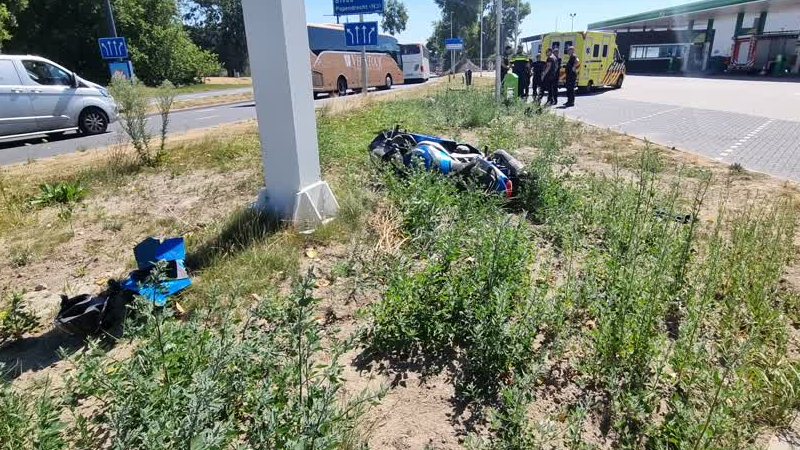 Aan de Laan der Verenigde Naties is donderdagmiddag een eenzijdig ongeluk gebeurd met een motorrijde...