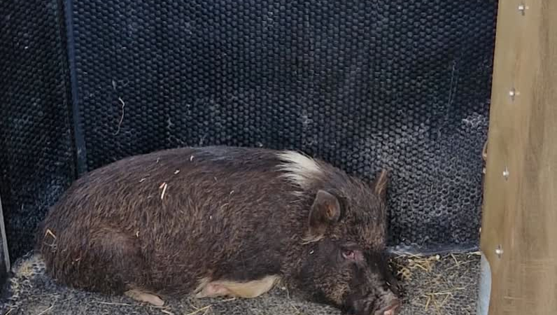 Alleen achtergelaten, met slecht een baal stro naast hen. Twee hangbuikzwijntjes zijn vorige week aa...