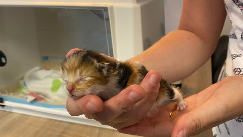 Hard gepiep onder een veranda in Dordrecht bleek zondag afkomstig van een wel heel jonge kitten. Het...