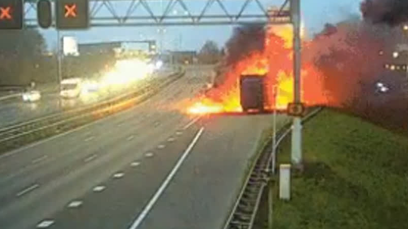 Drukte maandagmorgen op de wegen in en om Dordrecht. Oorzaak is een vrachtwagen die in brand is gevl...