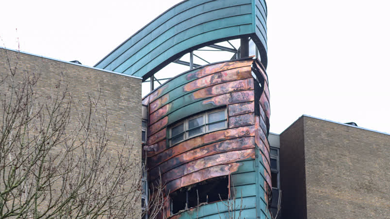 Het herstel van de schade, veroorzaakt door de verwoestende brand in de SSF-woontoren in Dordrecht, ...