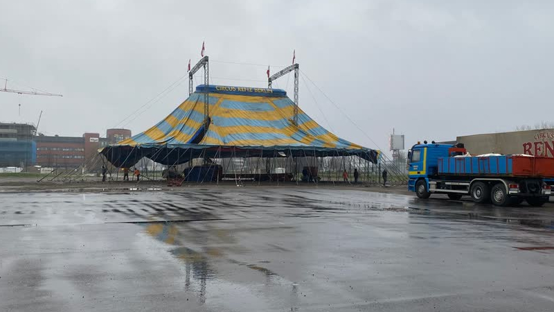 Het tempo zit er goed in. Met man en macht werd er maandag gebouwd aan de tent van Circus Royal. Vol...