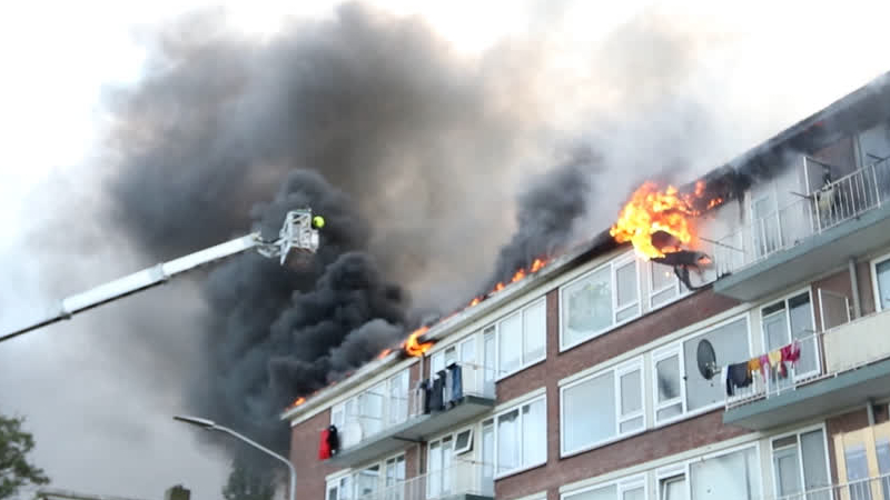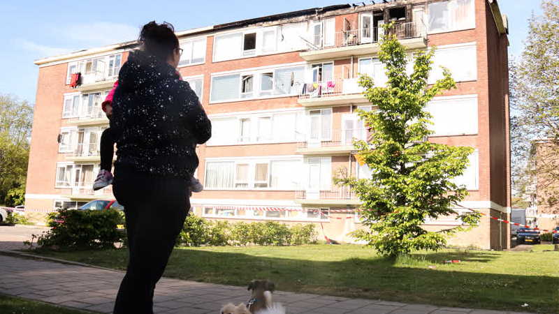 Bewoners van de portiekflat in Crabbehof, waar dinsdagavond een grote brand woedde, moeten waarschij...