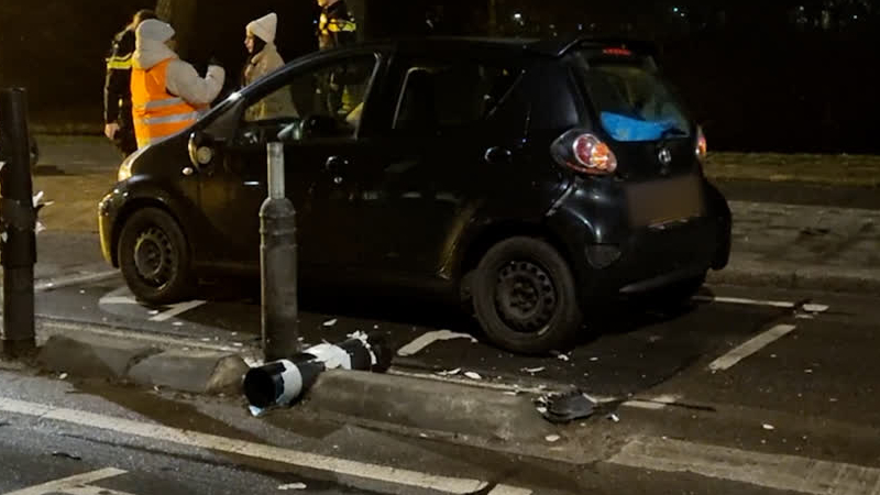 Op de Mijlweg in Dordrecht is woensdagochtend een personenauto tegen een verkeerslicht geknald. De w...