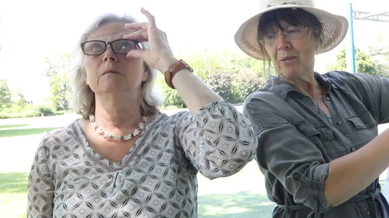 Ze turen naar het groen, met een kaart in de hand waarop de bomen staan die gekapt moeten worden. Ze...