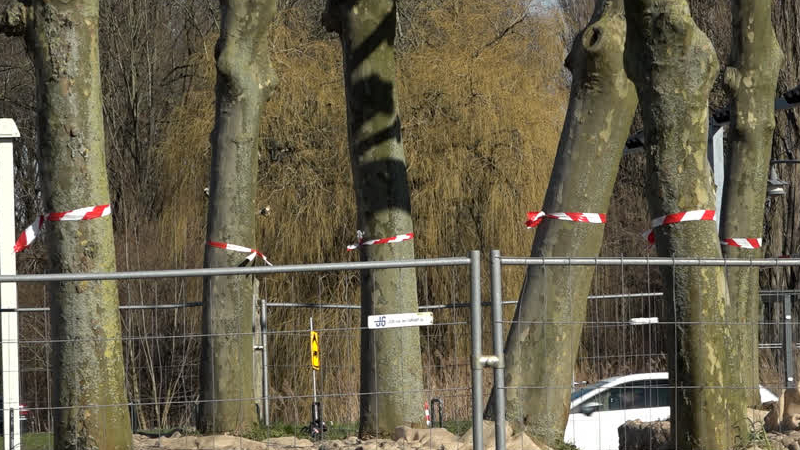 De gemeente is begonnen met het uitgraven van de knotplatanen langs de Overkampweg en de Karel Lotsy...