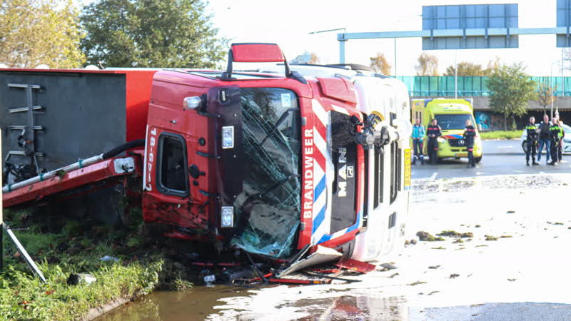 Op de Mijlweg in Dordrecht is even na half twaalf is een schuimbluswagen van de brandweer gekanteld....